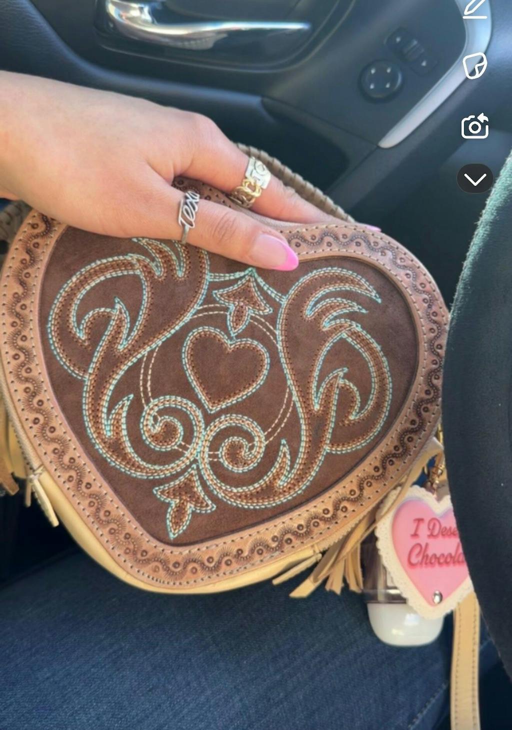 - Intricate hand-tooled floral and scroll patterns with a prominent heart motif.