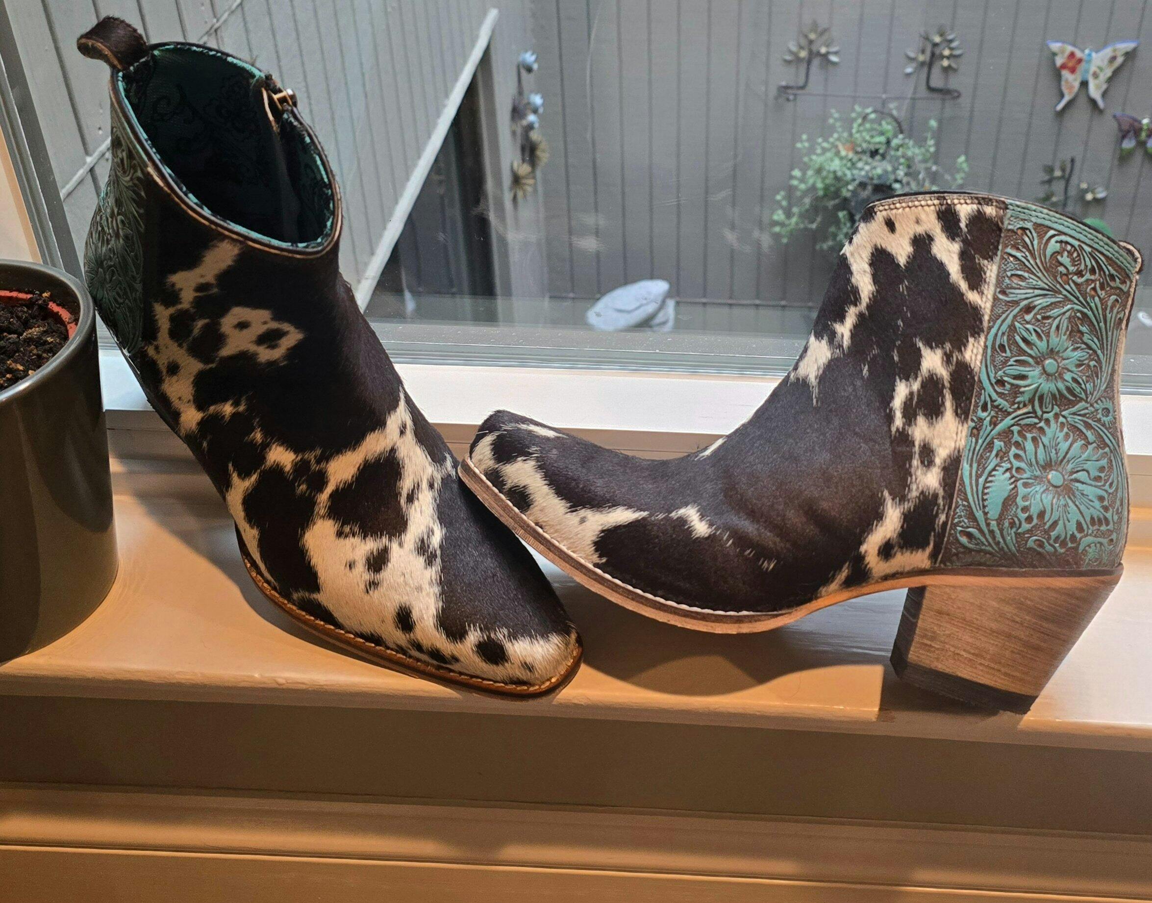 Myra Reyna Ridge Hairon Leather Booties – Teal Handtooled Detail, Square Toe, Country Cowgirl Style Sale price$169.65