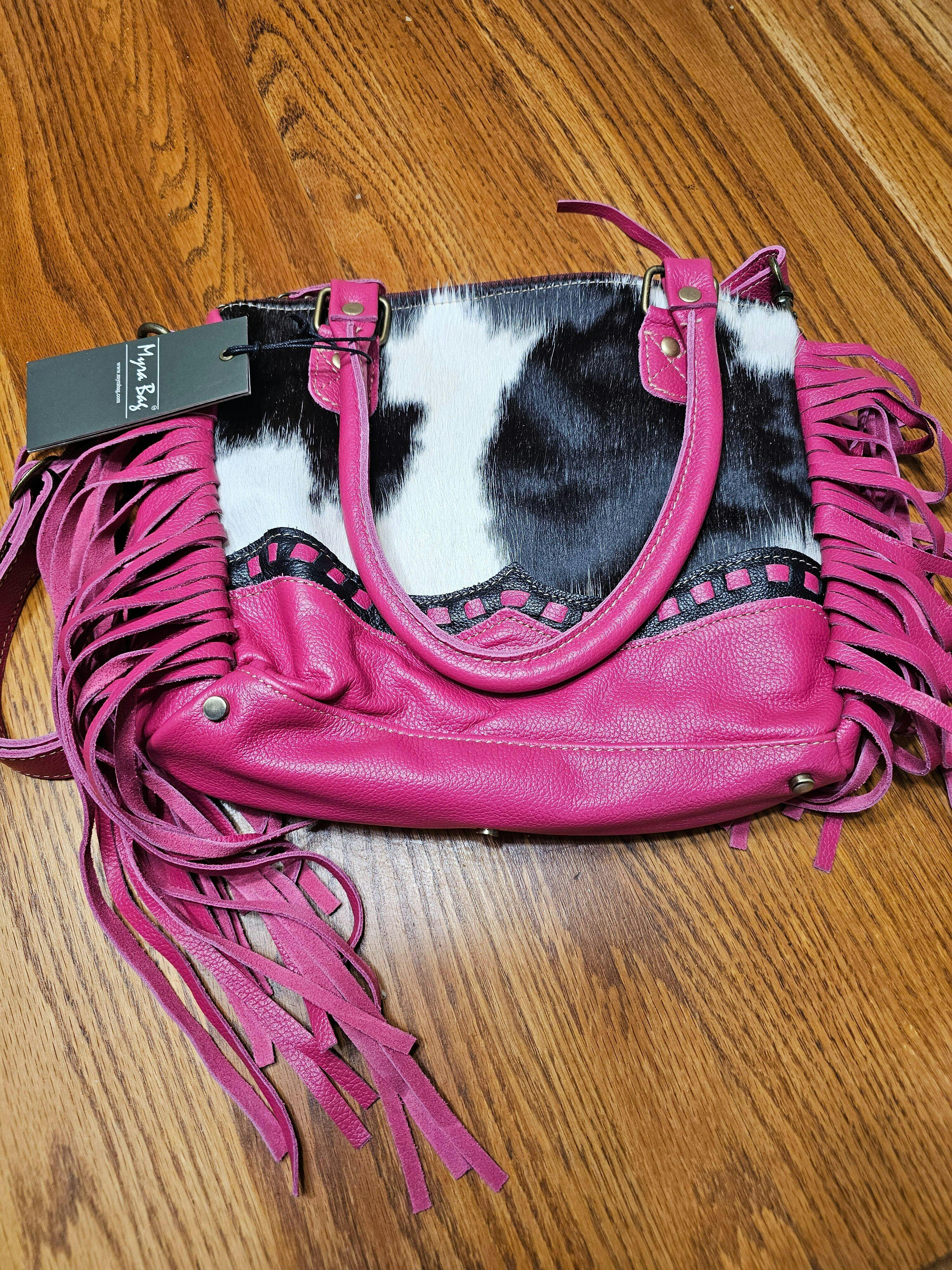 The Myra Letterstone Trail Concealed Carry Bag in rugged Western design is perfect for ranch and rodeo enthusiasts. Made from premium leather, this hairon hide handbag offers secure storage with a concealed compartment, inside zipper pocket, and phone slot. Its Southern-inspired charm with different visual accents makes it an ideal choice for a cowgirl trendy concealed carry purse. As one of the finest CCW bags, it blends practicality and style seamlessly for everyday use.